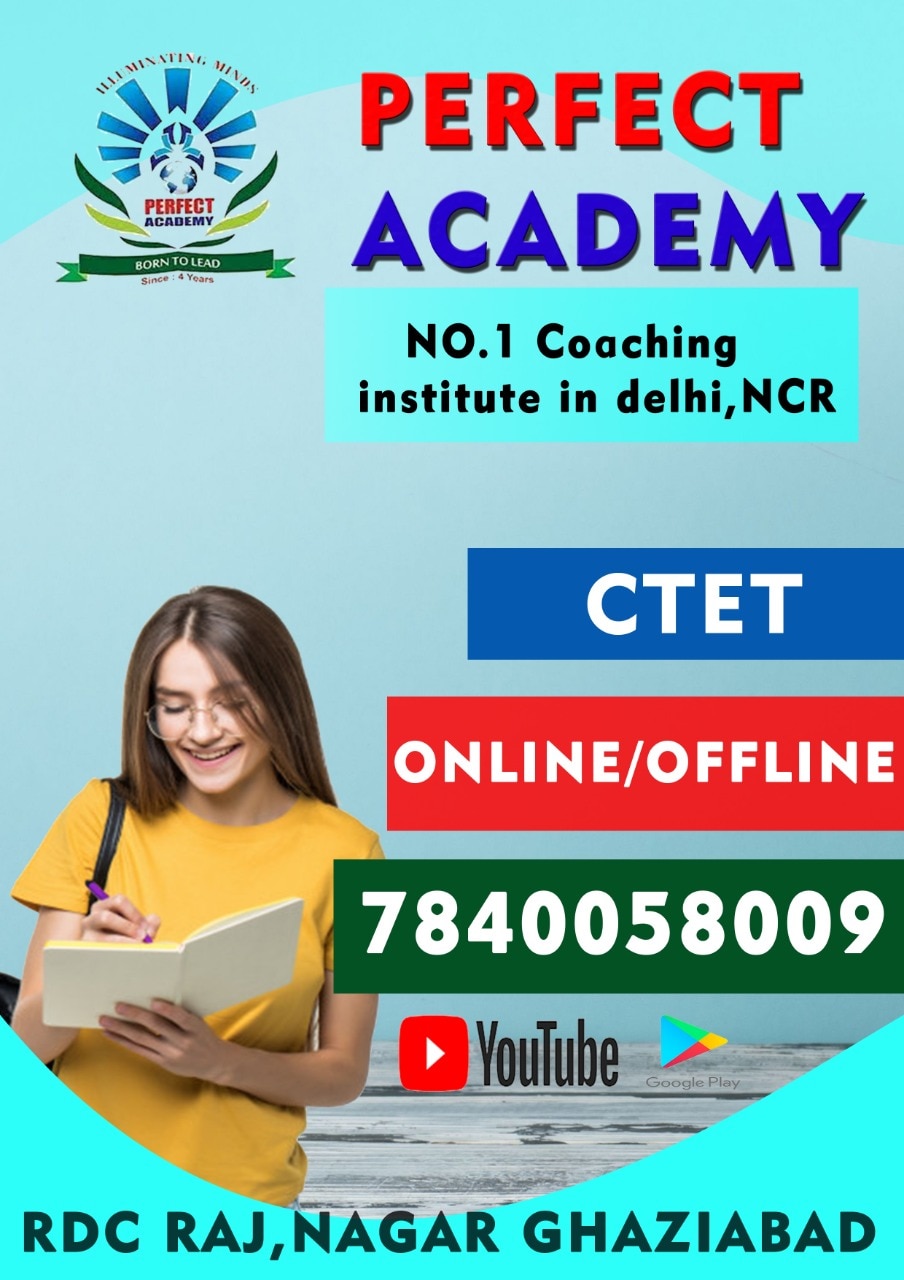 CTET Coaching in Ghaziabad is a best move by PERFECT ACADEMY. PERFECT ACADEMY is a Single and Special CTET Coaching in Ghaziabad.PERFECT ACADEMY gives best result every year in CTET.