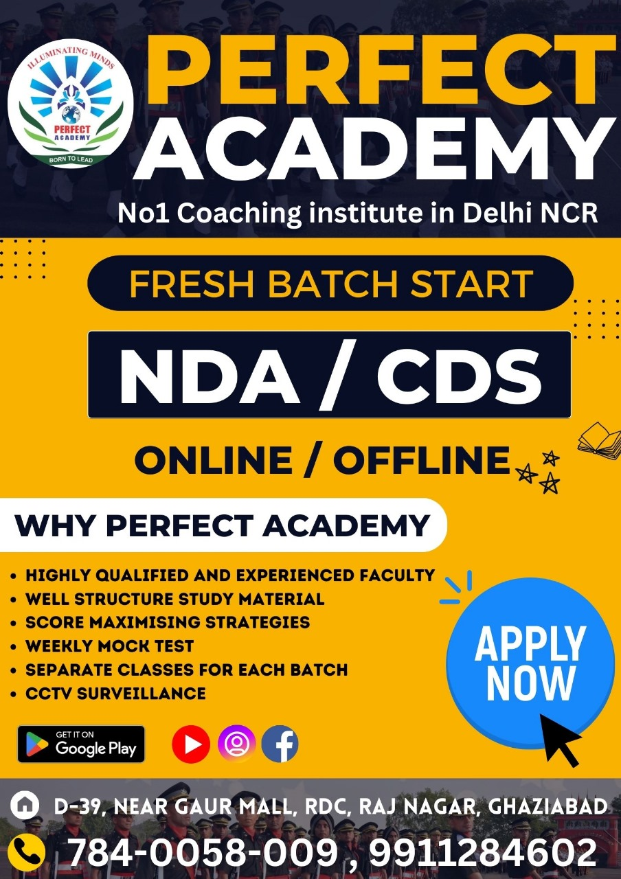 NDA Coaching in Ghaziabad. Joining Perfect Academy in Ghaziabad for your NDA preparation means you are one step closer to donning the prestigious uniform and serving the nation with pride. Our commitment to excellence and your determination can make this dream come true. Don’t wait! Enroll now and take the first step towards a fulfilling and prestigious career in the Indian Armed Forces. NDA Coaching in Ghaziabad